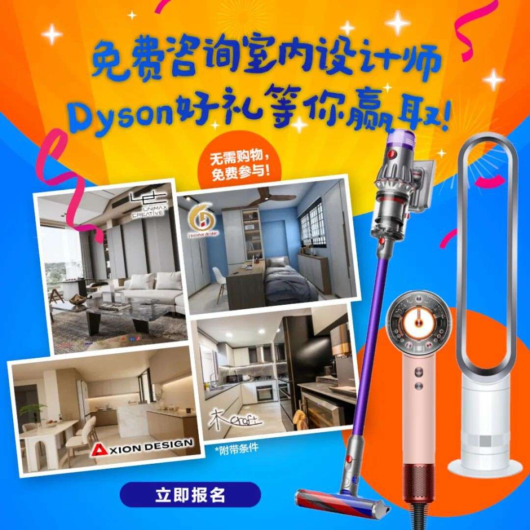 咨询室内设计师,更有Dyson家电豪礼(吸尘器,吹风机和无叶风扇)等你抽